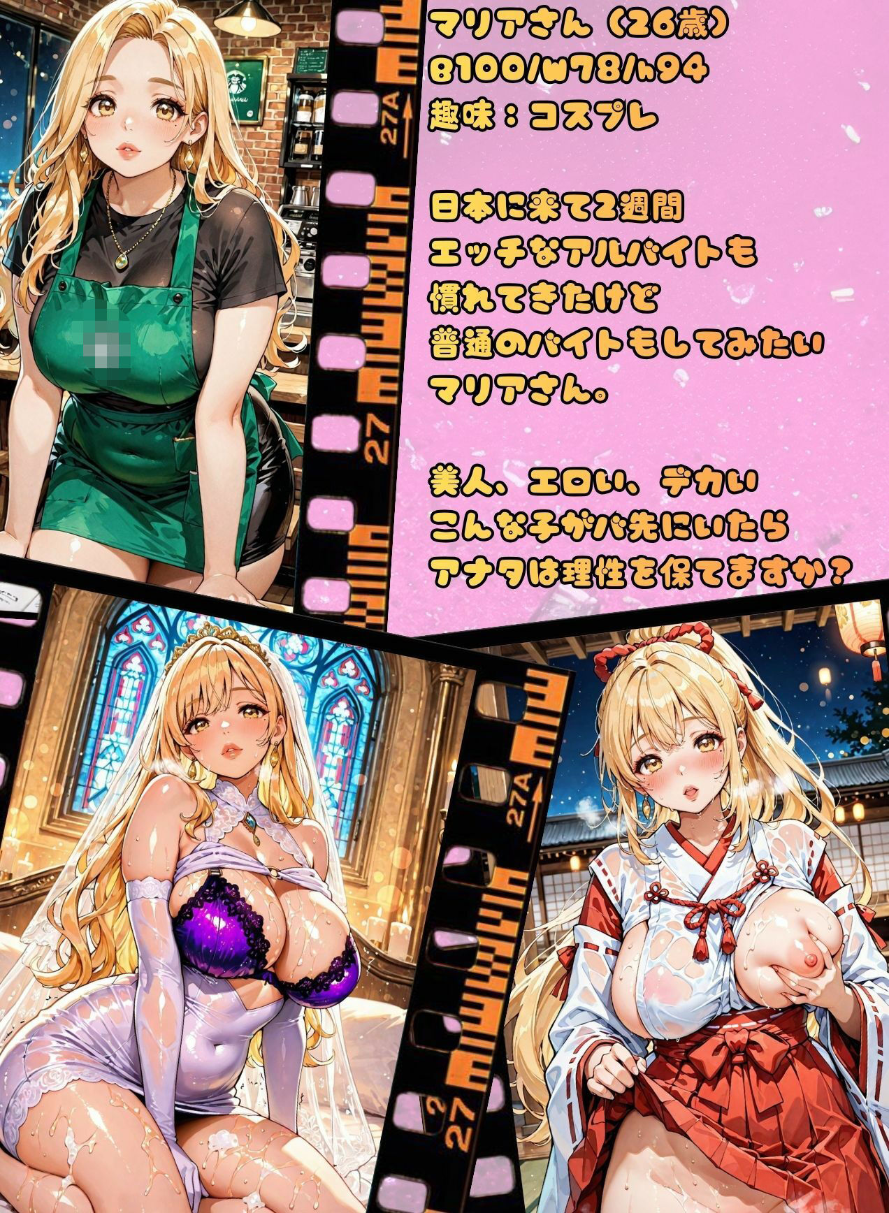 バ先のマリアさん おしごとそっちのけで濃厚異文化交流をご堪能 おっぱい X Facebook はてブ Pocket LINE コピー 2026.02.04 FANZA で 詳細を確認する▶ 目次 このエロ作品のハイライト画像このエロ作品の詳細情報 このエロ作品のハイライト画像 このエロ作品の詳細情報 発売日2026-02-01収録画像500枚ジャンル制服 巨乳 中出し フェラ ぶっかけ アナル パイズリ おっぱい 外国人 金髪 専売 男性向け 成人向け サークル肉壺の宴 品番d_721495価格¥990 FANZA で 詳細を確認する▶