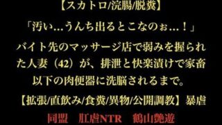 【スカトロ/浣腸/脱糞】「汚い…うんち出るとこなのぉ…!」バイト先のマッサージ店で弱みを握られた人妻(42)が、排泄と快楽漬けで家畜以下の肉便器に洗脳されるまで。【拡張/直飲み/食糞/異物/公開調教】